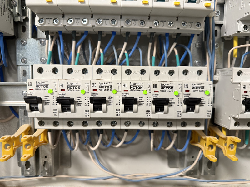 После установки электрощитов с УЗДП «Исток» на объект по запросу застройщика выехала техническая служба АО «Экотех». На месте были проведены испытания времени срабатывания устройств на различных типах нагрузки и имитациях дуговых замыканий.